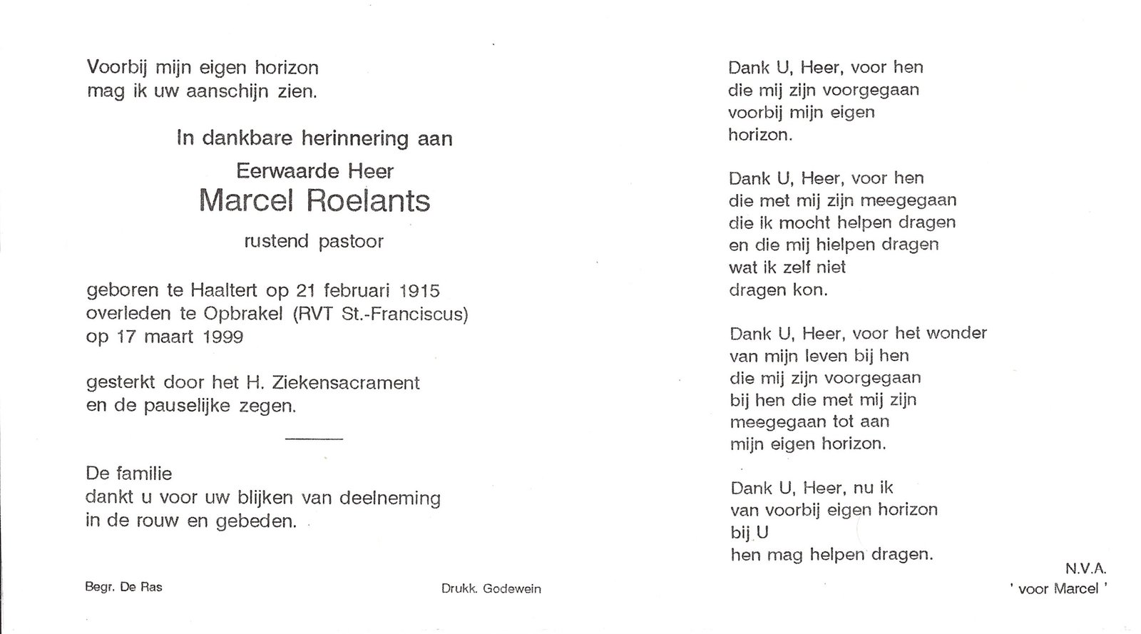 | Roelants Marcel, Priester | Haaltert | 21/02/1915 | Opbrakel | 17/03/1999 |