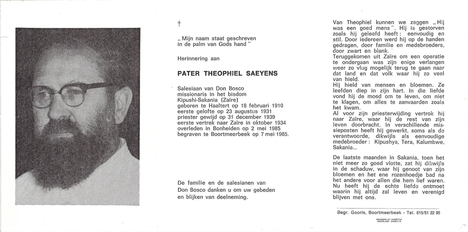 | Saeyens Theophiel, Pater | Haaltert | 18/02/1910 | Boortmeerbeek | 07/05/1985 |