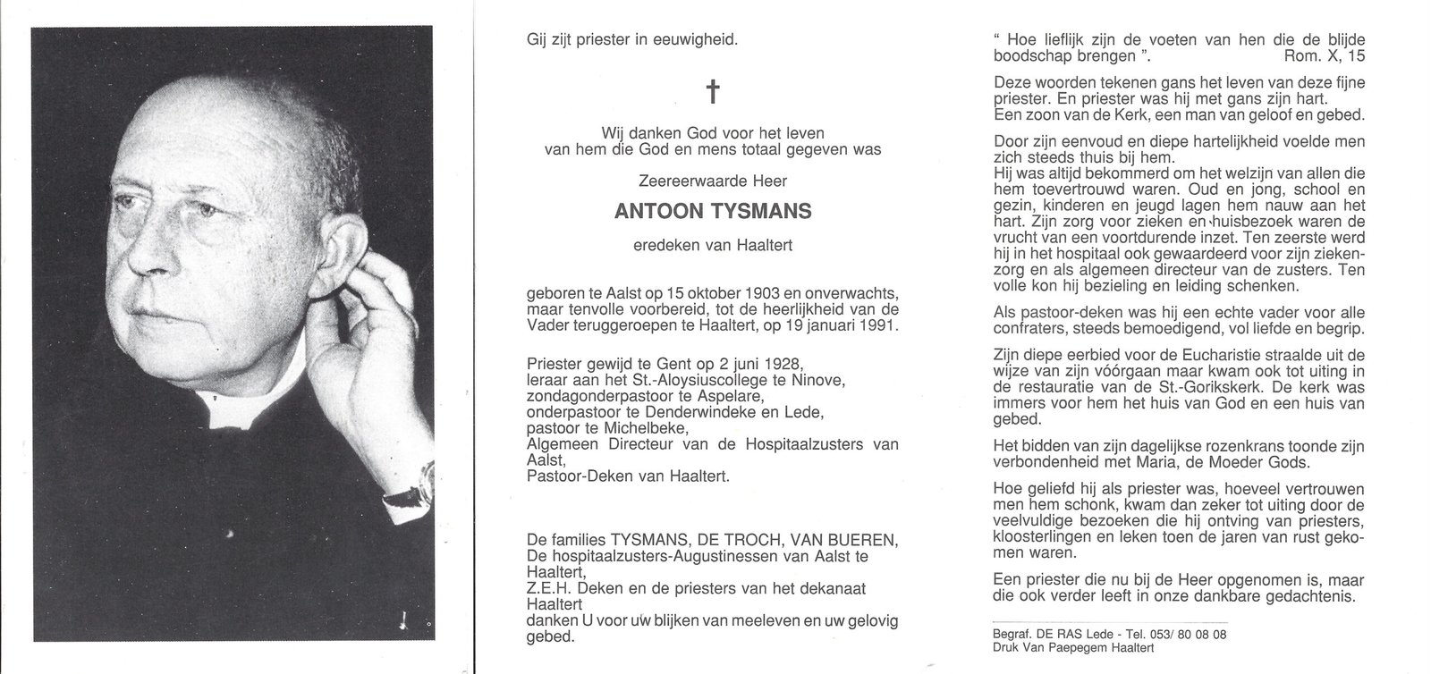 | Tysmans Antoon, Priester-Deken Haaltert | Aalst | 15/10/1903 | Haaltert | 19/01/1991 |