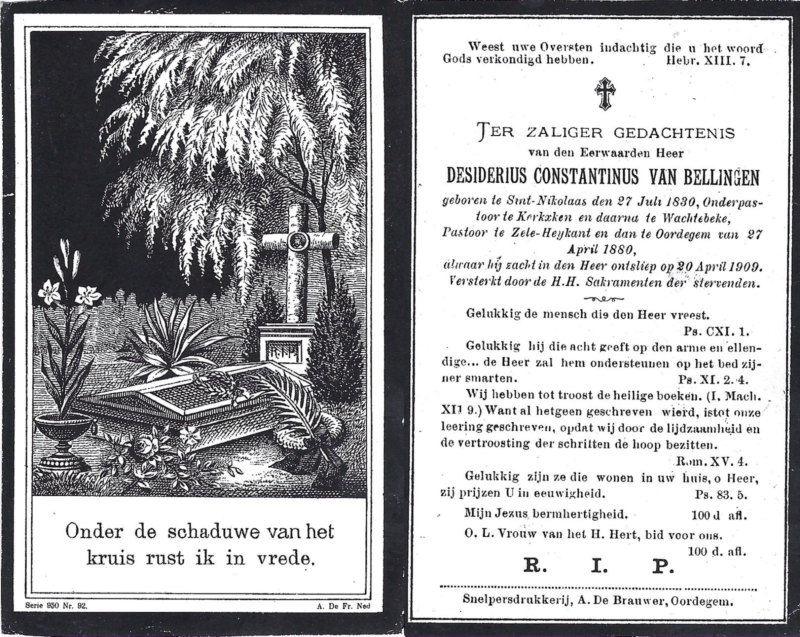 | Van Bellingen Desiderius, Onderpastoor Kerksken | Sint-Niklaas | 27/07/1830 | Zele | 20/04/1909 |