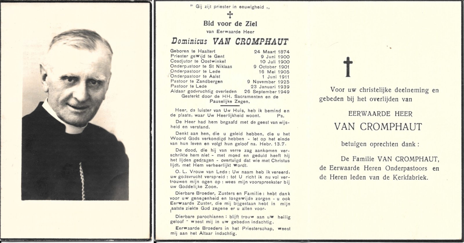 Van Cromphaut Dominicus, PriesterHaaltert24/03/1874Lede26/09/1949