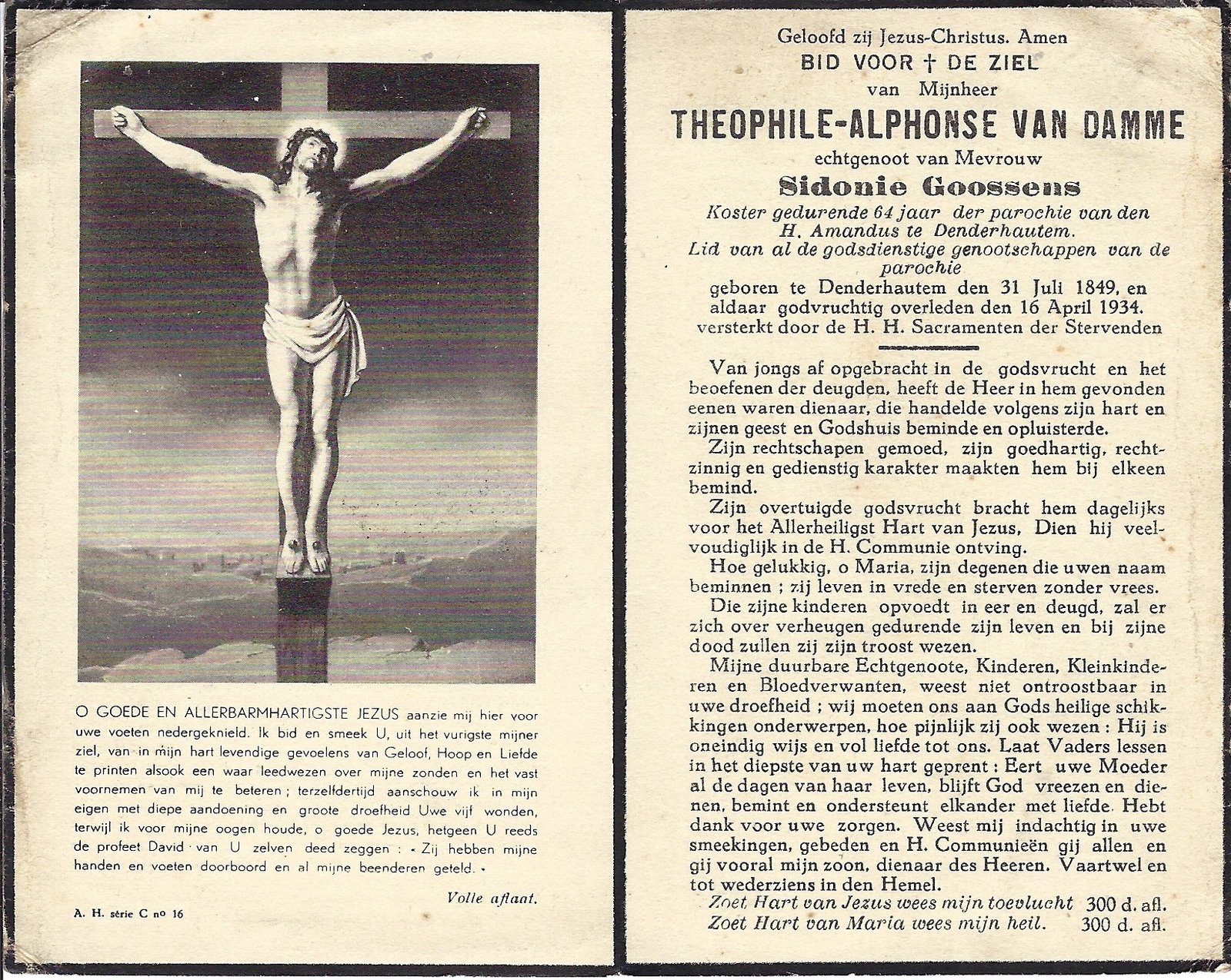 | Van Damme Theophiel, Koster Denderhoutem | Denderhoutem | 31/07/1849 | Denderhoutem | 16/04/1934 |