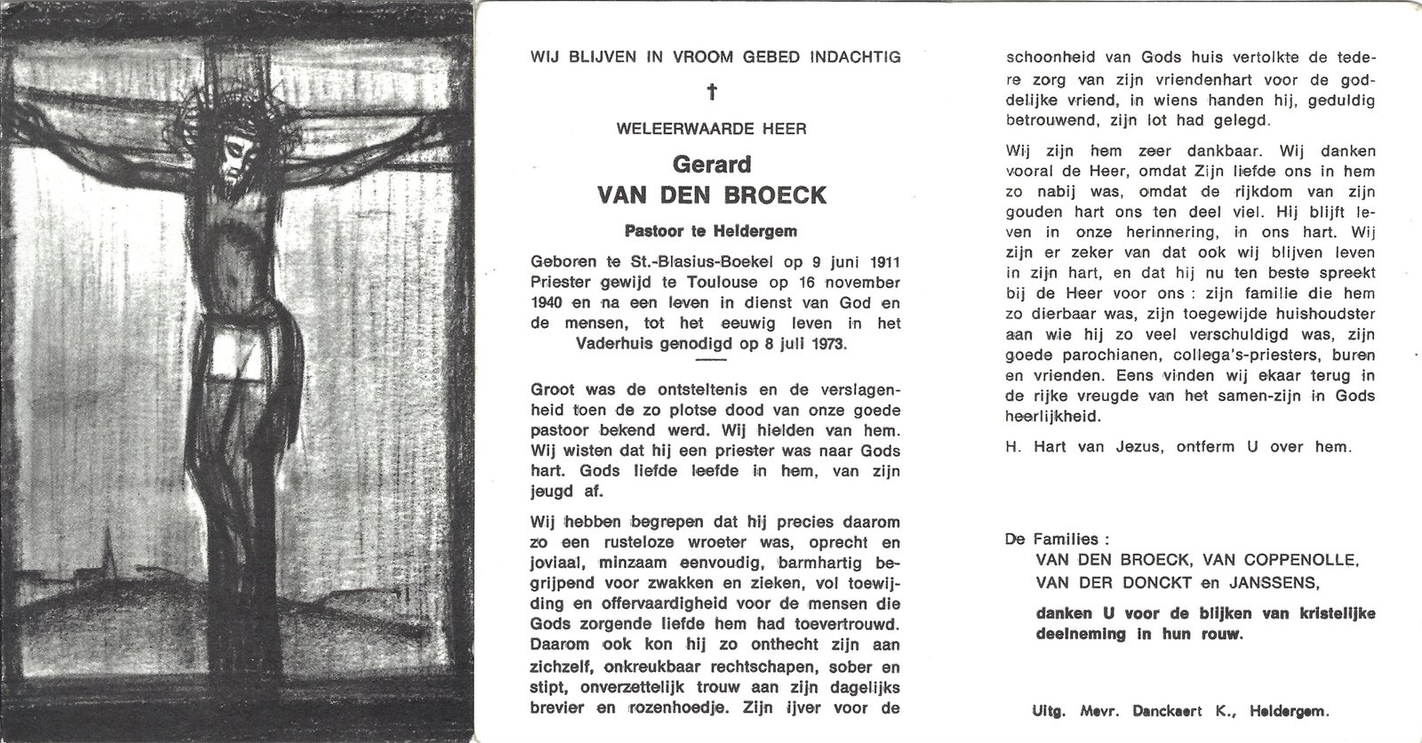 | Van Den Broeck Gerard, Priester Heldergem | Sint-Blasius-Boekel | 09/06/1911 | Heldergem | 08/07/1973 |