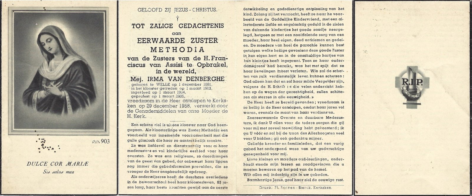 | Van Denberghe Irma, Zuster Methodia | Welle | 01/12/1881 | Kerksken | 29/12/1958 |