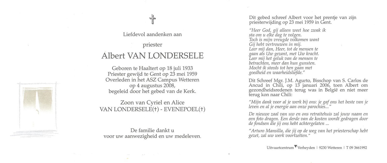 | Van Londersele Albert, Priester | Haaltert | 18/07/1933 | Wetteren | 04/08/2008 |