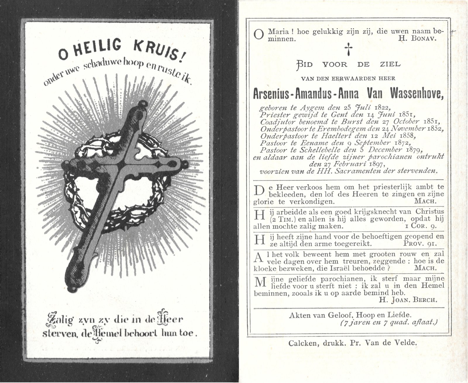 | Van Wassenhove Arsenius, Onderpastoor Haaltert | Aaigem | 25/07/1822 | Schellebelle | 05/12/1879 |