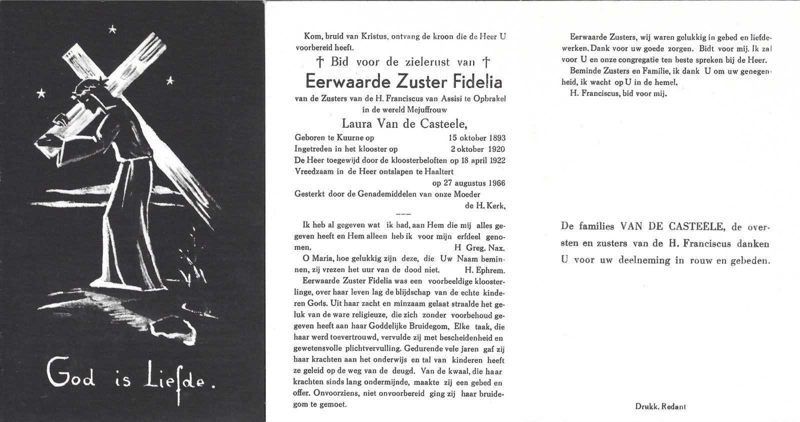 | Van de Casteele Laura, Zuster Fidelia | Kuurne | 15/10/1893 | Haaltert | 27/08/1966 |
