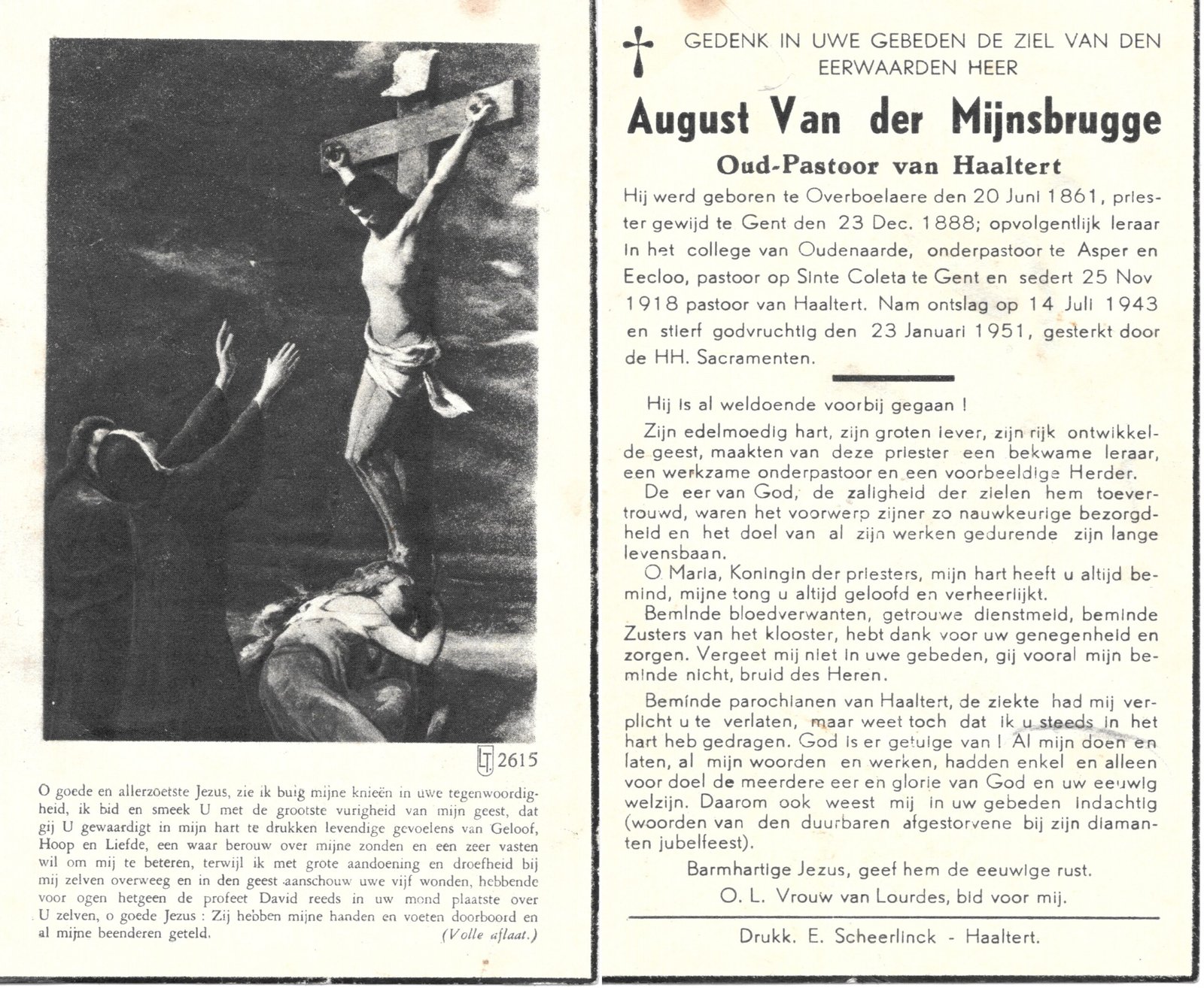| Van der Mijnsbrugge August, Priester Haaltert | Overboelare | 20/06/1861 | Haaltert | 23/01/1951 |