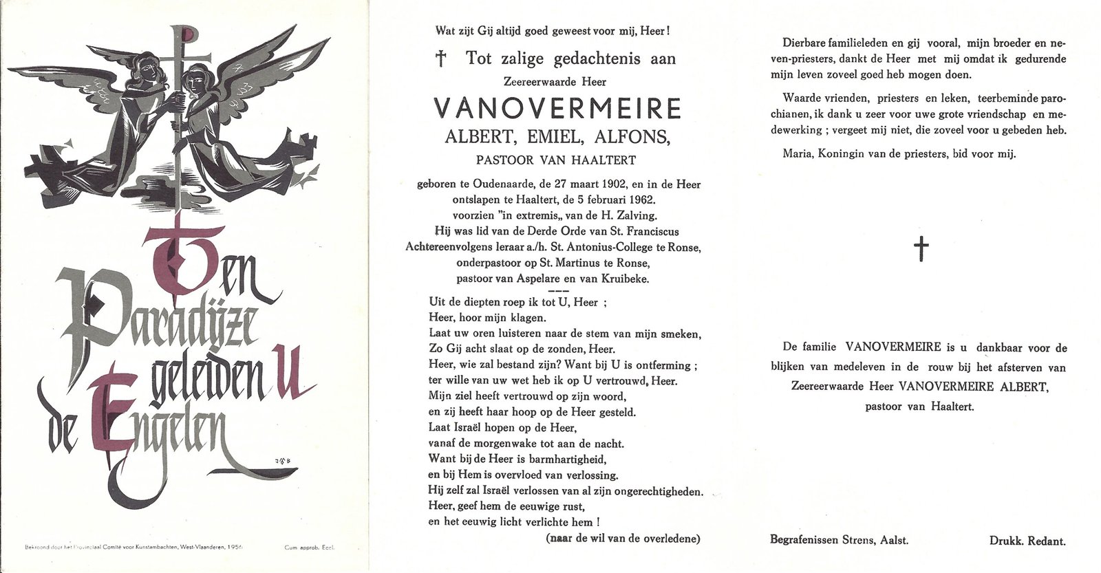 | Vanovermeire Albert, Pastoor Haaltert | Oudenaarde | 27/03/1902 | Haaltert | 05/02/1962 |