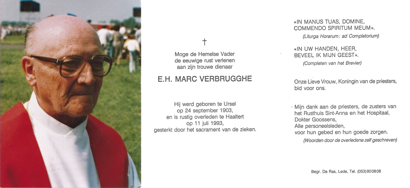 | Verbrugghe Marc, Pastoor | Ursel | 24/09/1903 | Haaltert | 11/07/1993 |