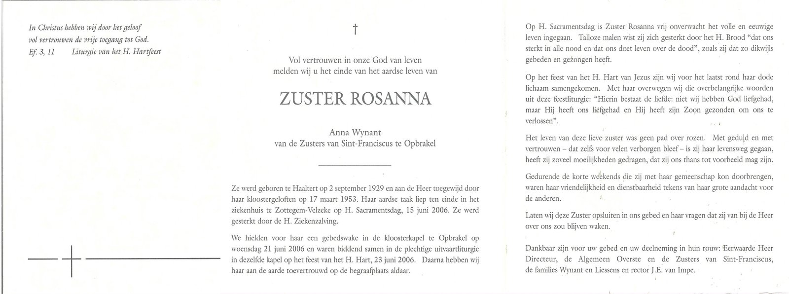 | Wynant Anna, Zuster Rosanna | Haaltert | 02/09/1922 | Velzeke | 15/06/2006 |