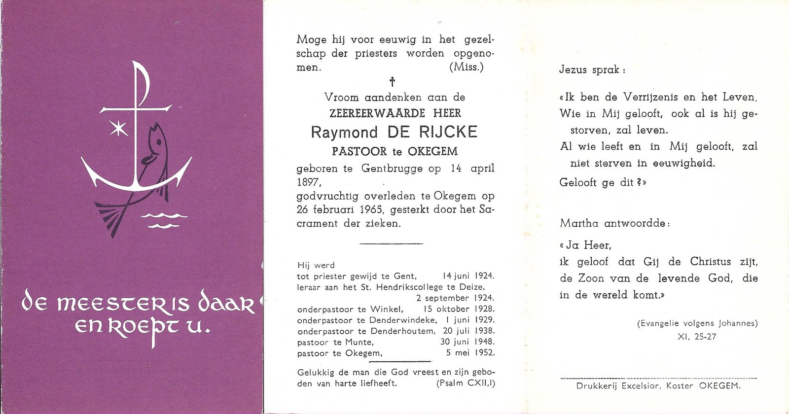 De Rijcke Raymond, onderpastoor DenderhoutemGentbrugge14/04/1897Okegem26/02/1965