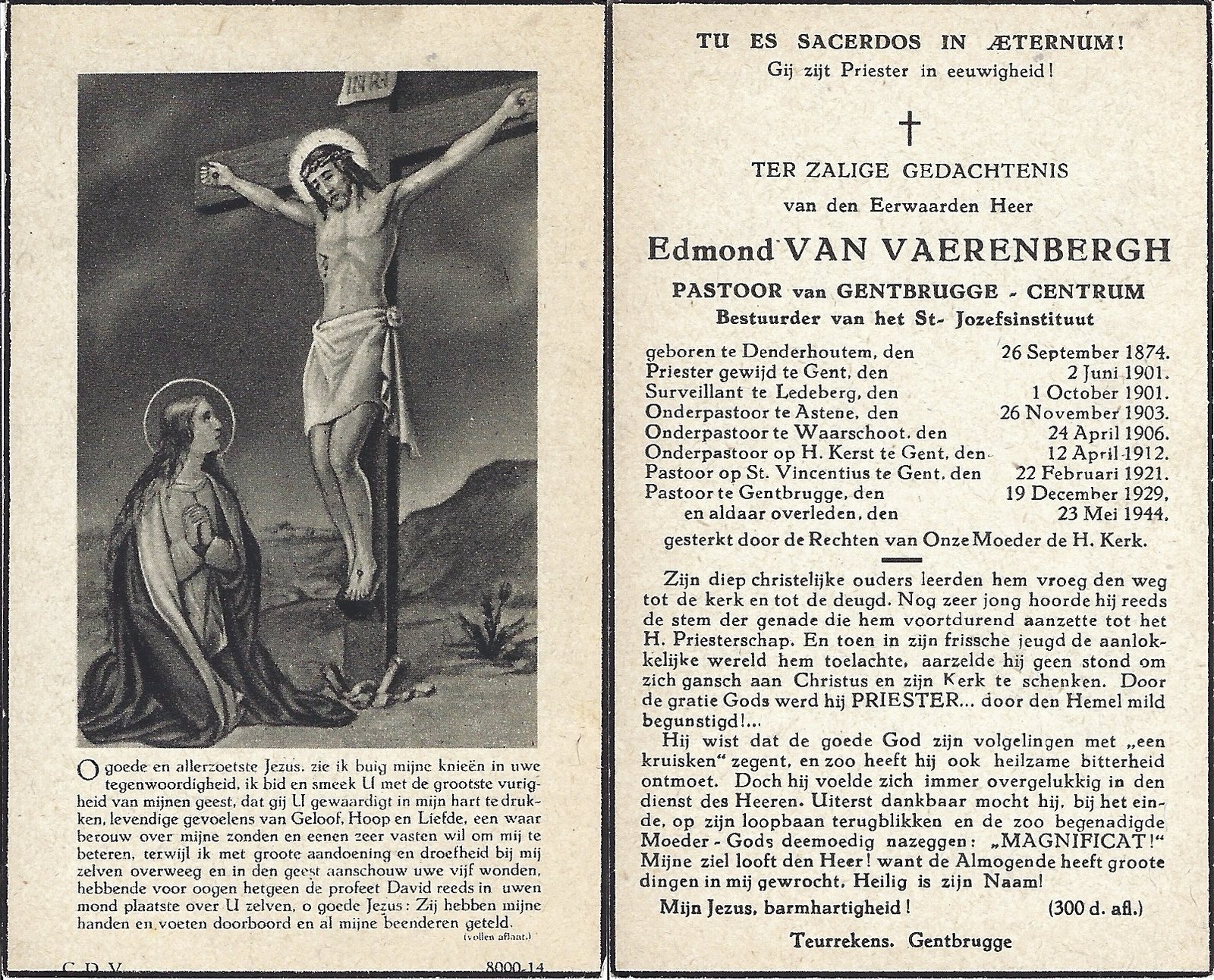 Van Vaerenbergh Edmond, PriesterDenderhoutem26/09/1874Gentbrugge23/05/1944