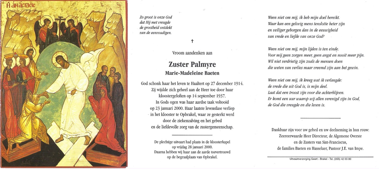 Baeten Marie-Madeleine, Zuster PalmyreHaaltert27/12/1914Opbrakel23/01/2000