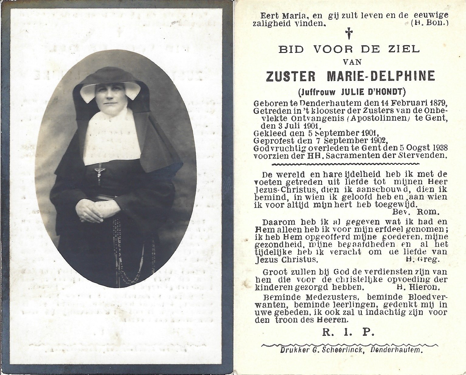 D’Hondt Julie, Zuster Marie-DelphineDenderhoutem14/02/1879Gent05/08/1938