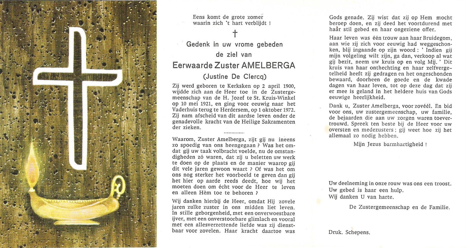 De Clercq Justine, Zuster AmelbergaKerksken02/04/1900Herdersem01/10/1972