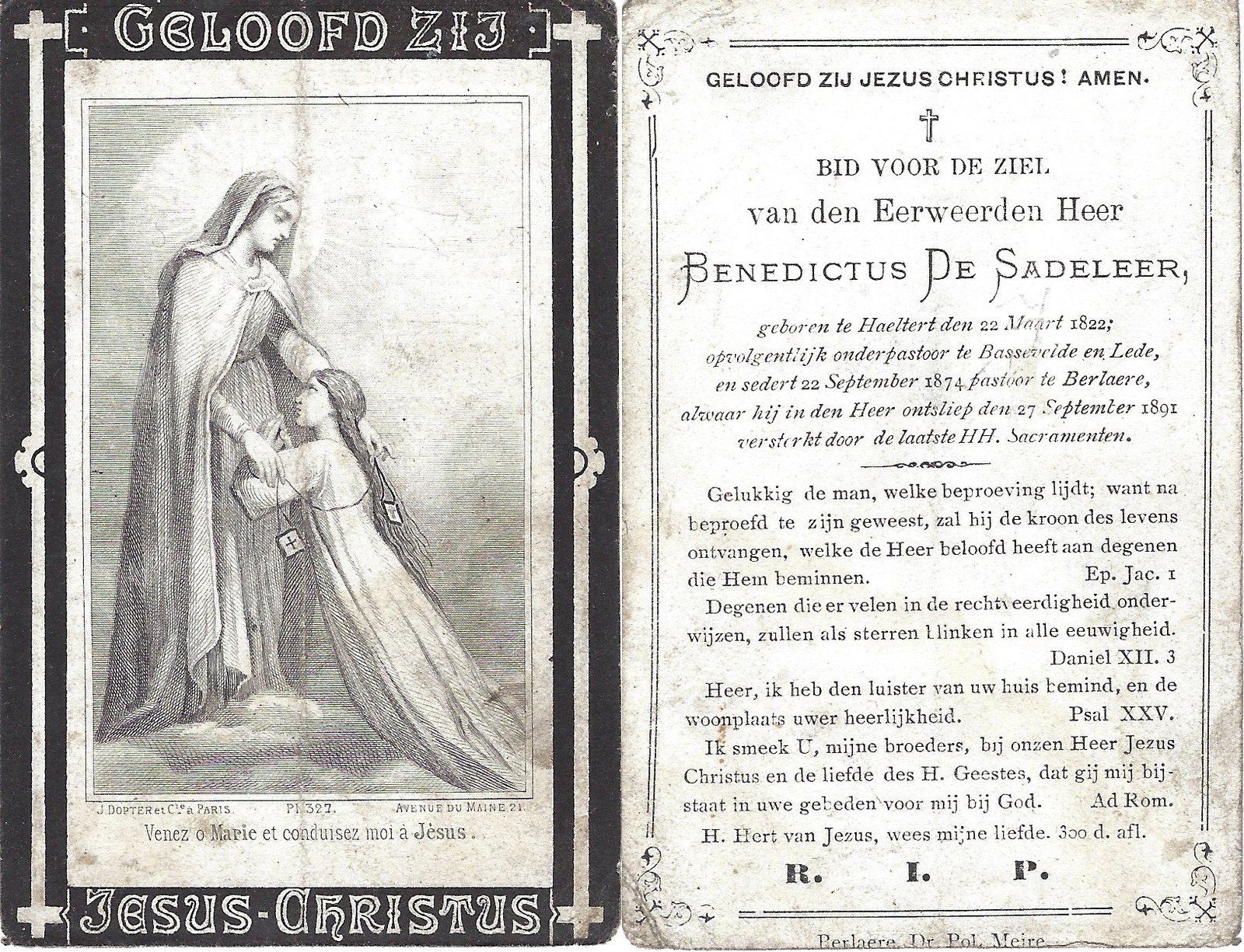 De Sadeleer Benedictus, PriesterHaaltert22/03/1822Berlare27/09/1891