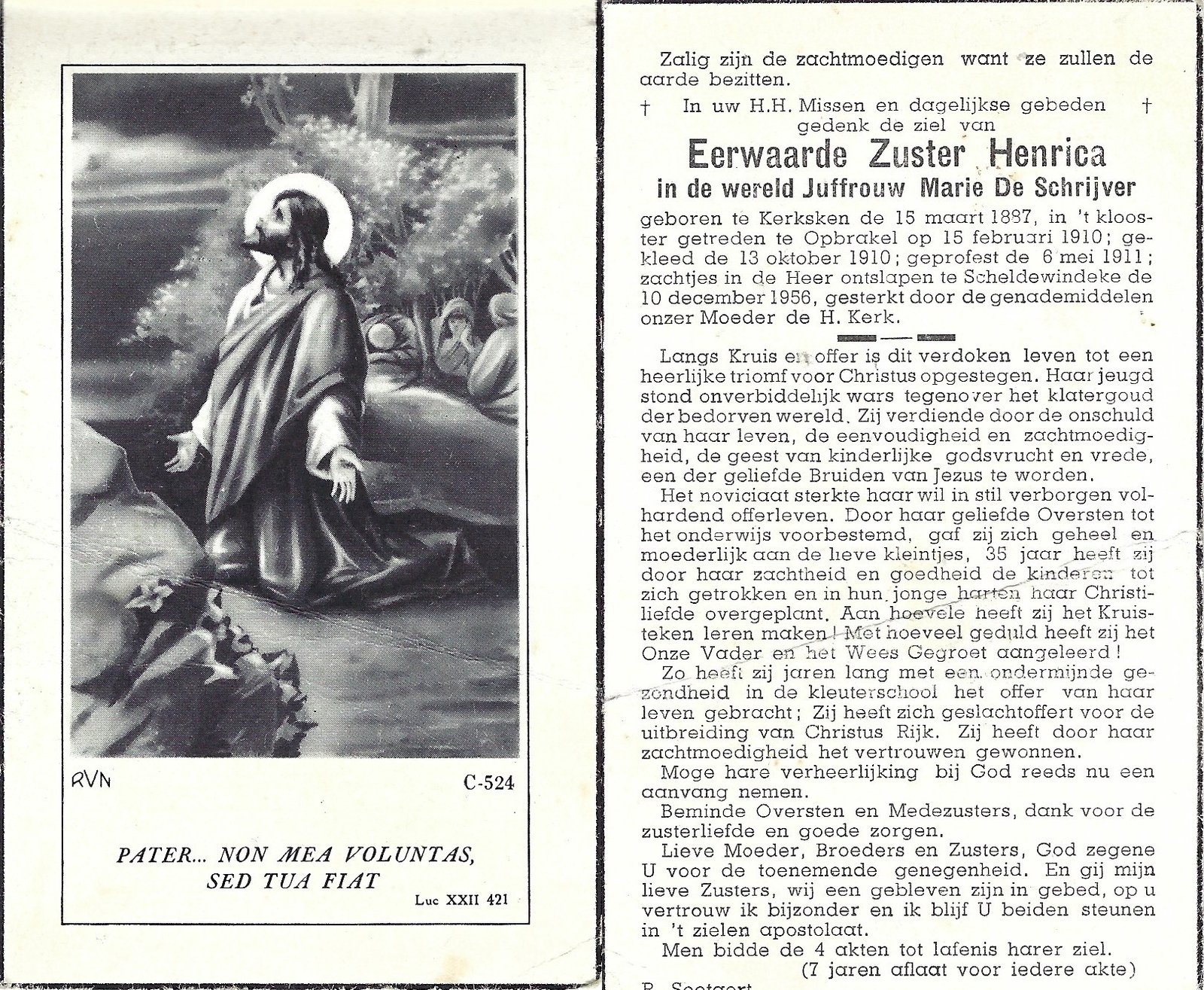 De Schrijver Marie, Zuster HenricaKerksken15/03/1887Scheldewindeke10/12/1956