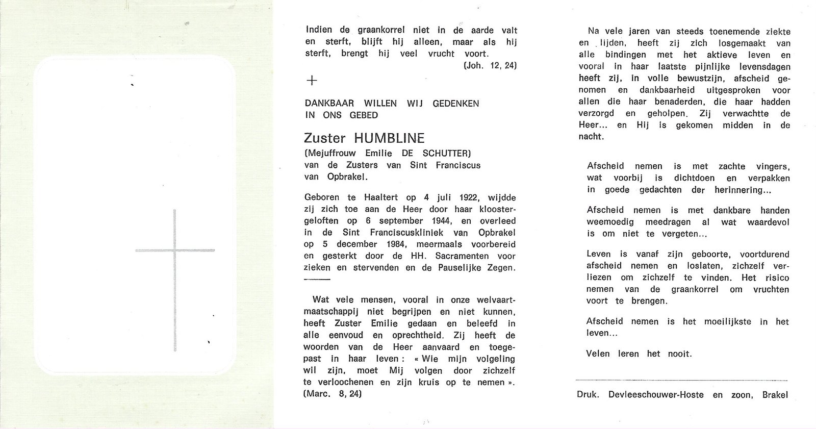 De Schutter Emilie, Zuster HumblineHaaltert04/07/1922Opbrakel05/12/1984