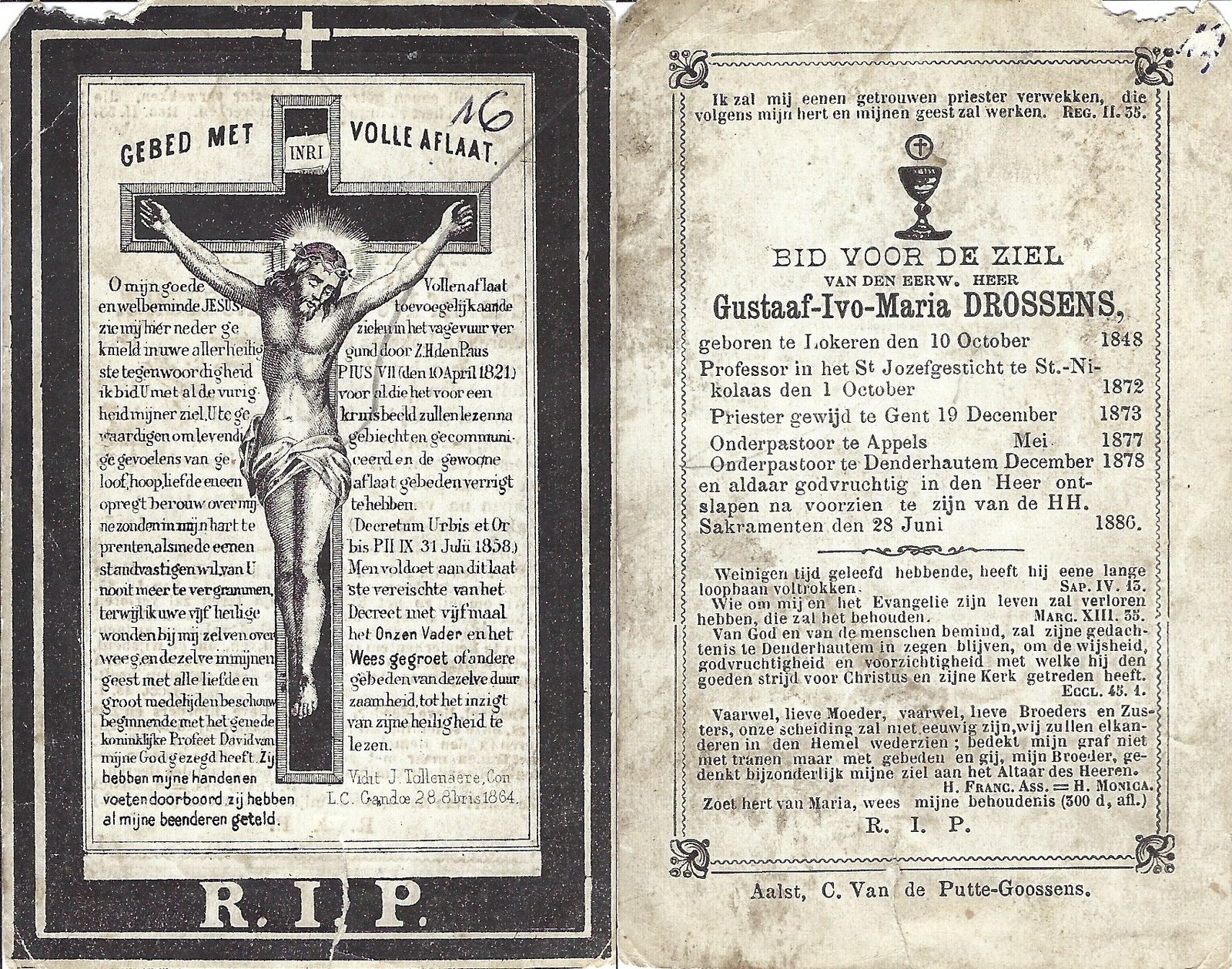 Drossens Gustaaf, Onderpastoor Denderhoutem Lokeren10/10/1848Denderhoutem28/06/1886