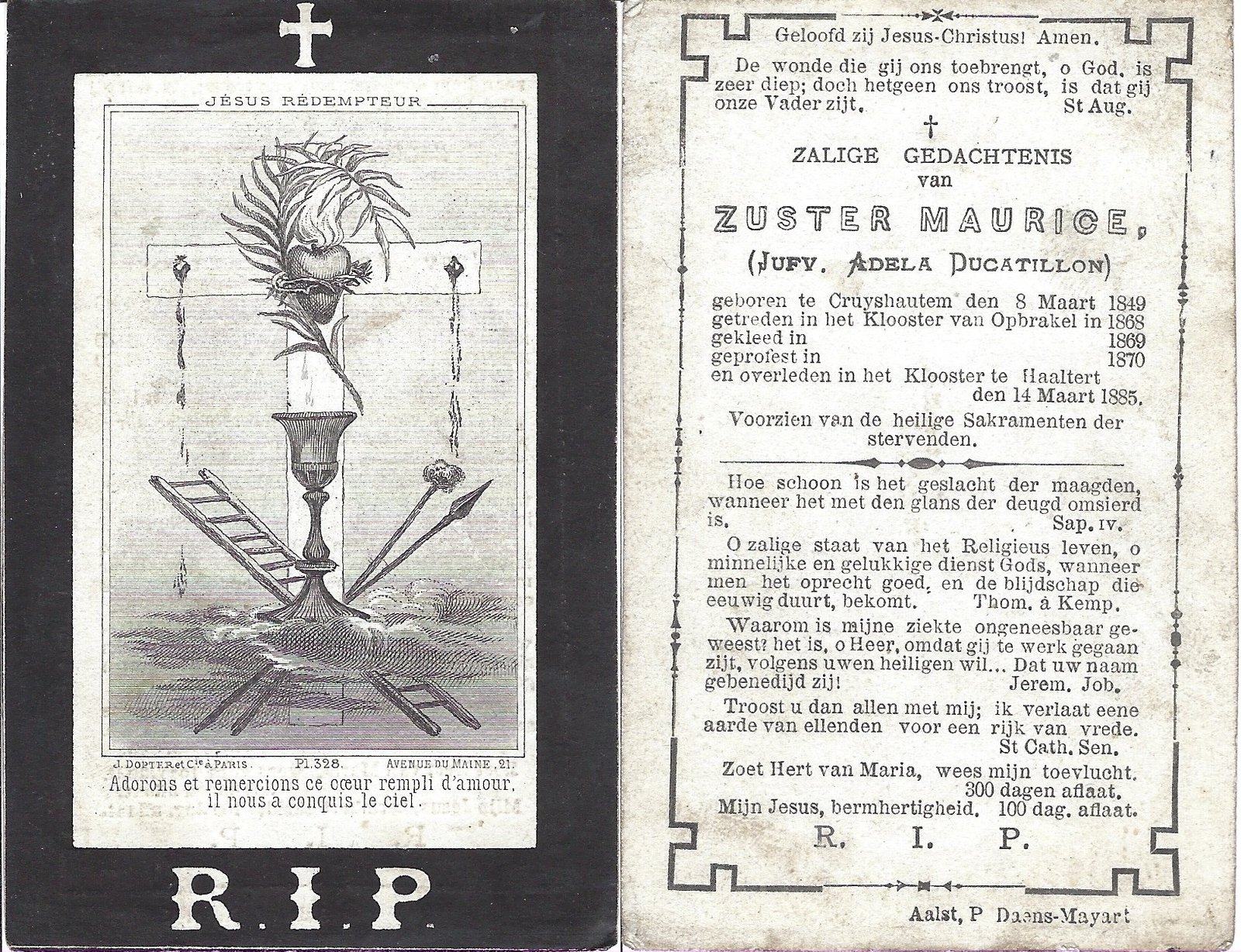 Ducatillon Adela, Zuster MauriceKruishoutem08/03/1849Haaltert14/03/1885