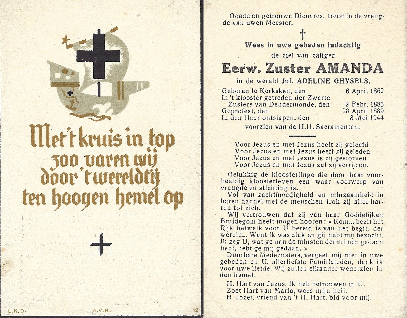 Van Melkebeke Sophie, Zuster AloysiaHeldergem04/12/1848Heldergem08/11/1917
