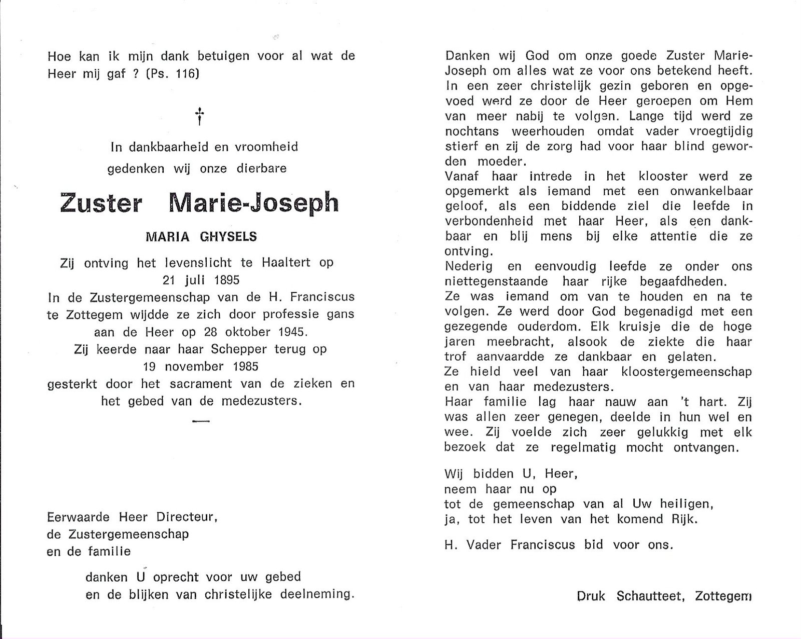 Bogaert Maria, Zuster MariaHaaltert07/07/1899Aalst24/02/1974
