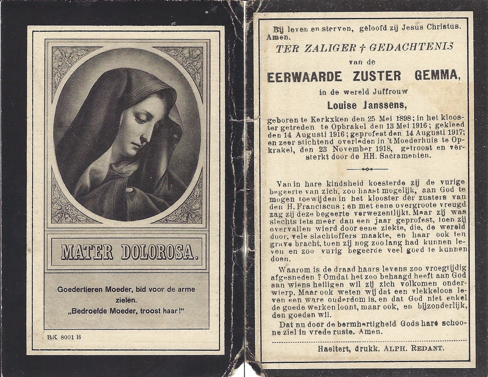 Allaer Emilie, Zuster EmilieHeldergem12/02/1896Ronse27/09/1918