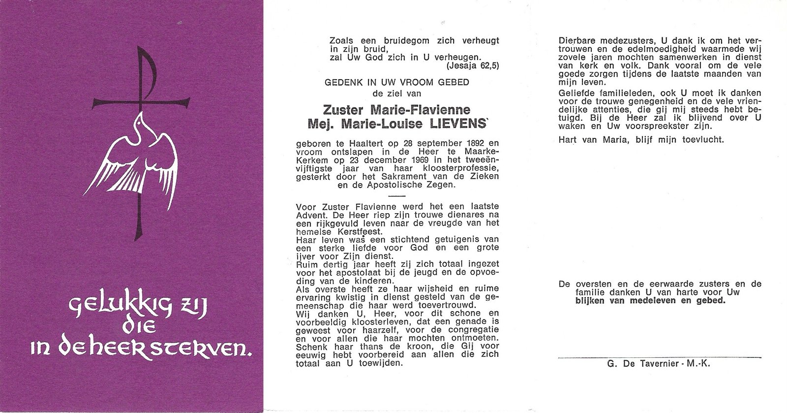 De Smet Maria, Zuster BenedictaHaaltert29/08/1898Maarke-Kerkem24/11/1993