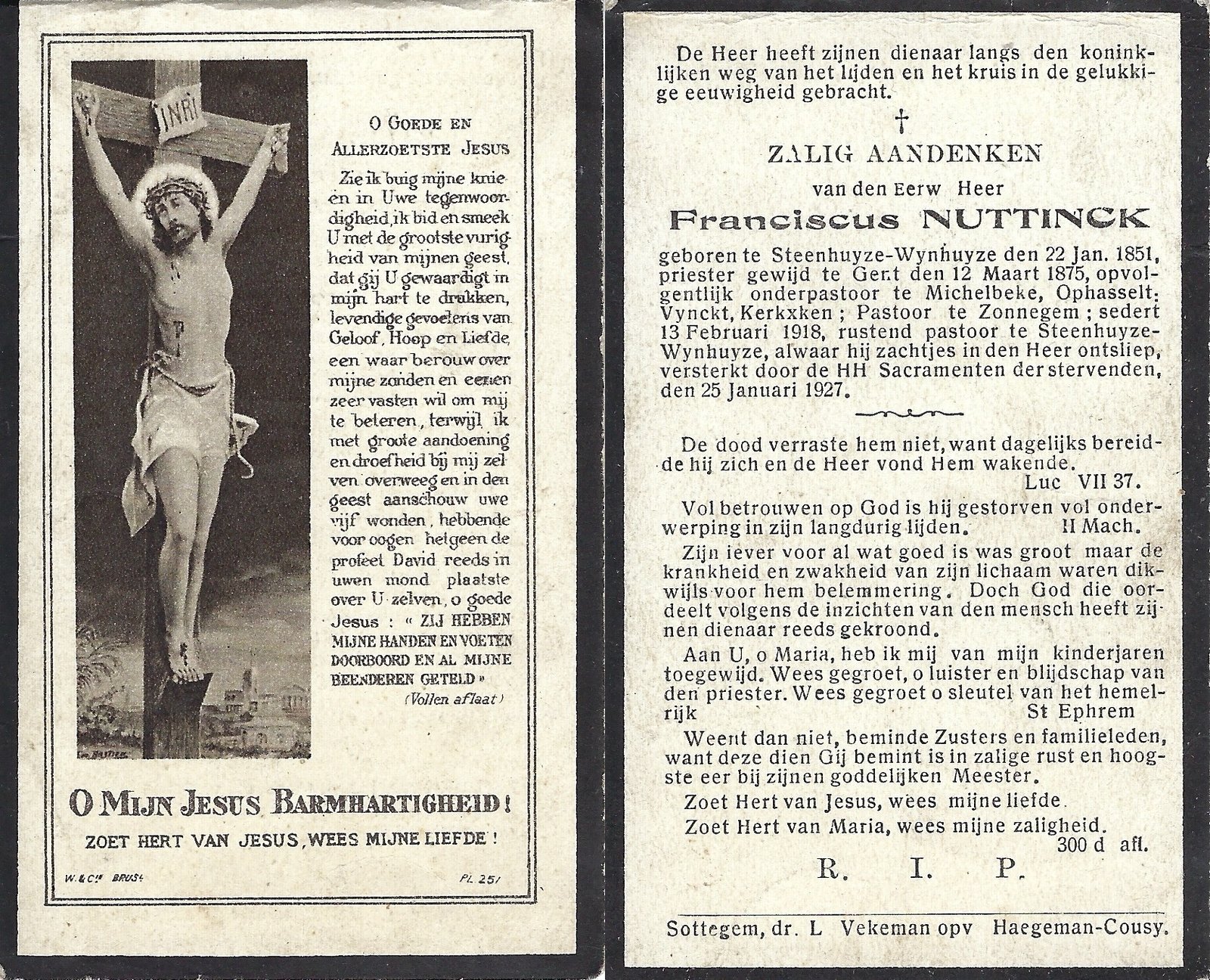 Nuttinck Franciscus, Onderpastoor KerkskenSteenhuize-Wijnhuize22/01/1851Steenhuize-Wijnhuize25/01/1927