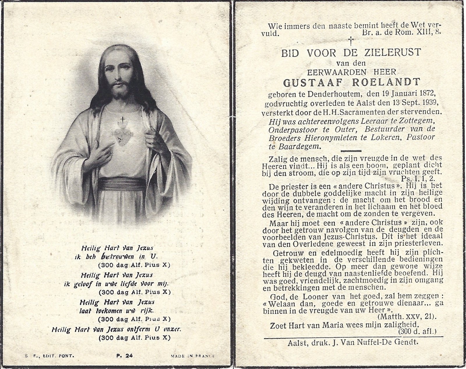 Roelandt Gustaaf, PriesterDenderhoutem19/01/1872Aalst13/09/1939