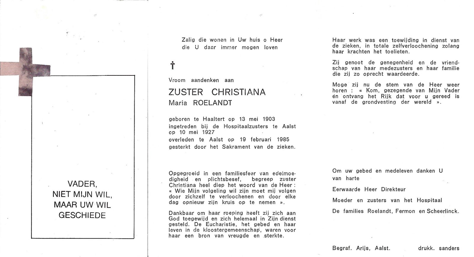 Roelandt Maria, Zuster ChristianaHaaltert13/05/1903Aalst19/02/1985