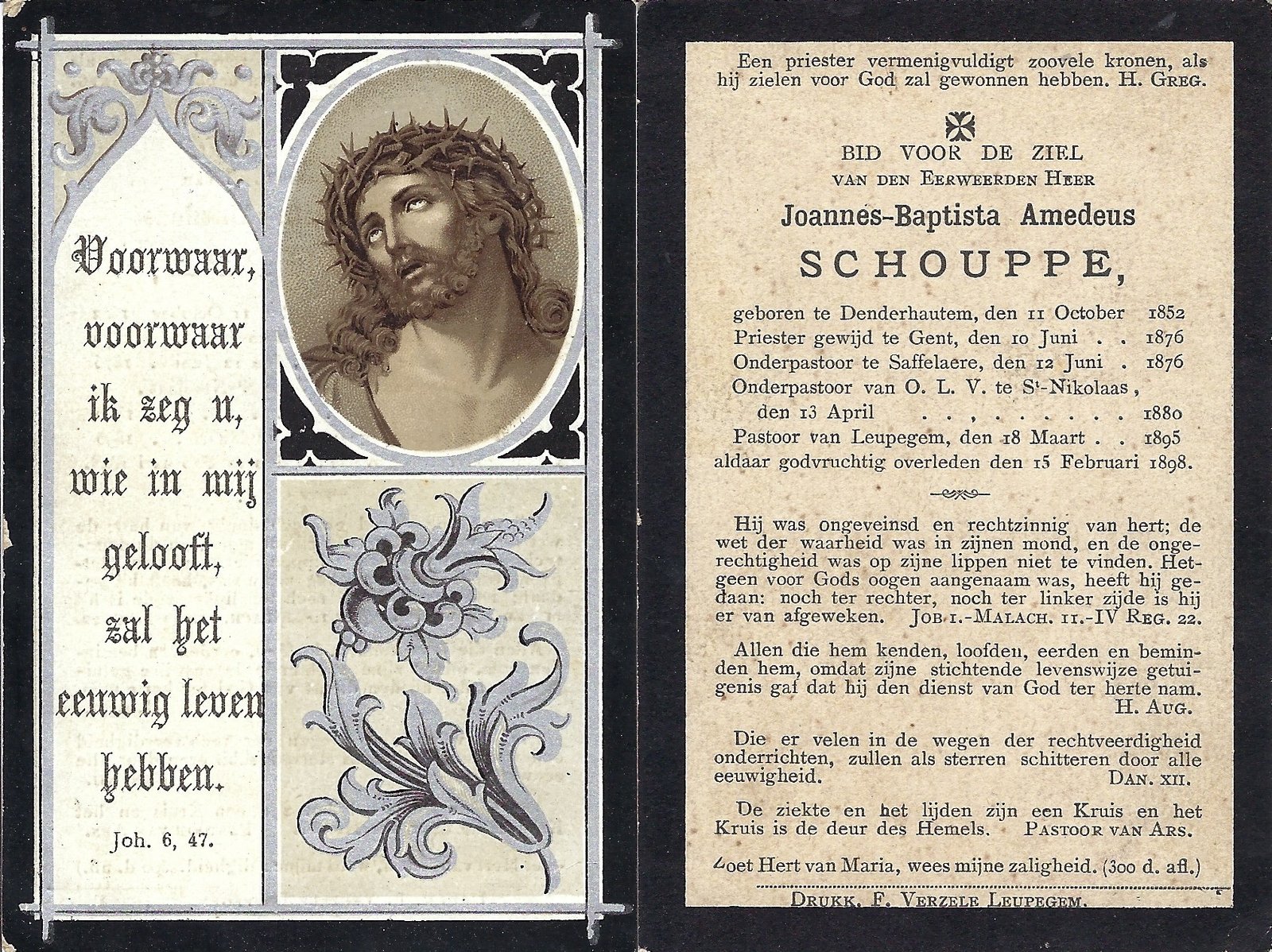 Schouppe Joannes-Baptista, PriesterDenderhoutem11/10/1852Leupegem15/02/1898