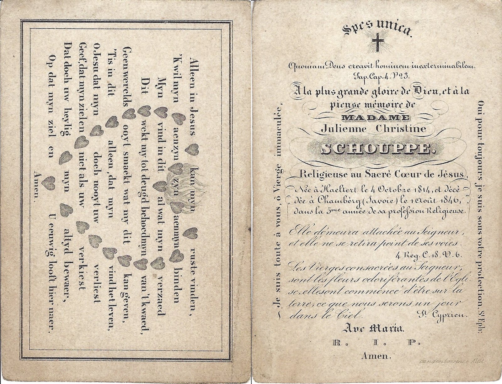 Schouppe Julienne Christine, ReligieuzeHaaltert04/10/1814Chambéry01/08/1846