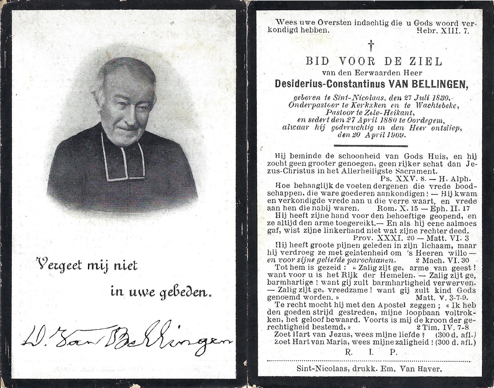 Van Bellingen Desiderius, Onderpastoor KerkskenSint-Niklaas27/07/1830Zele20/04/1909