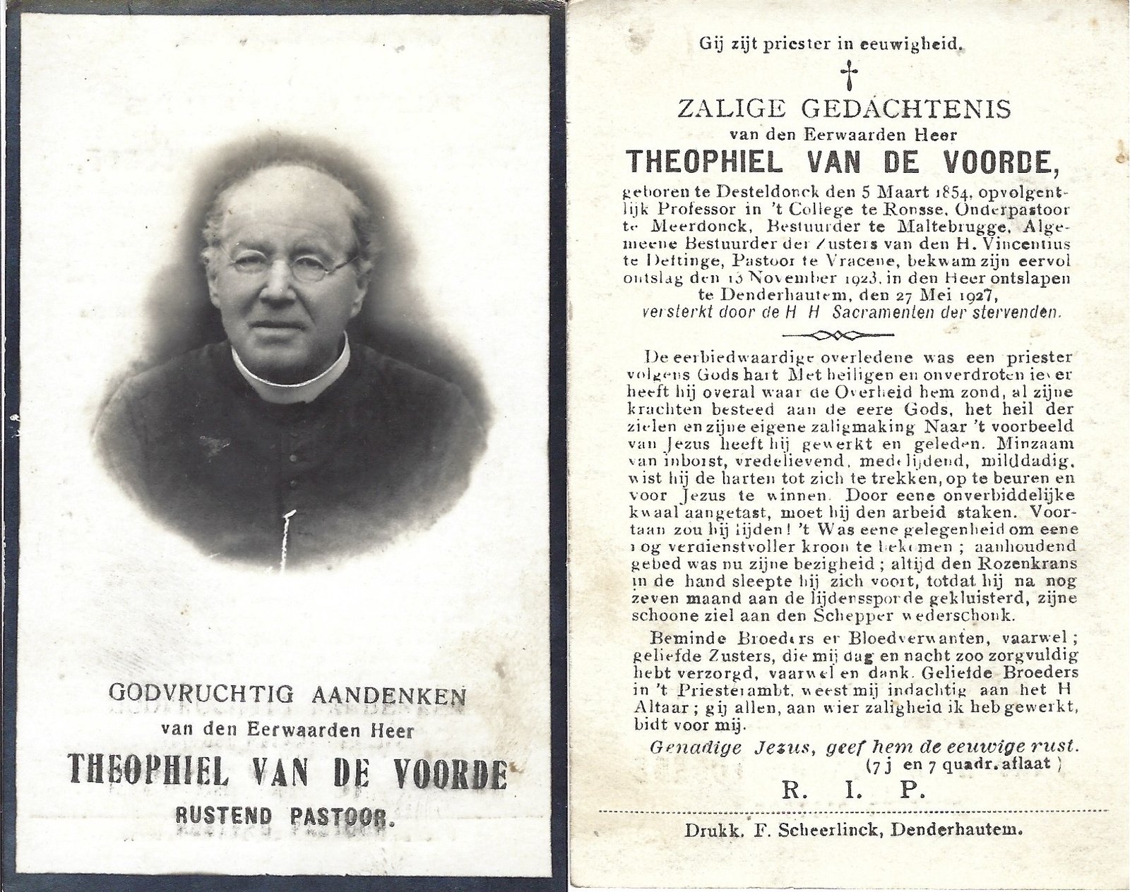 Van De Voorde Theophiel, PriesterDesteldonk05/03/1854Denderhoutem27/05/1927