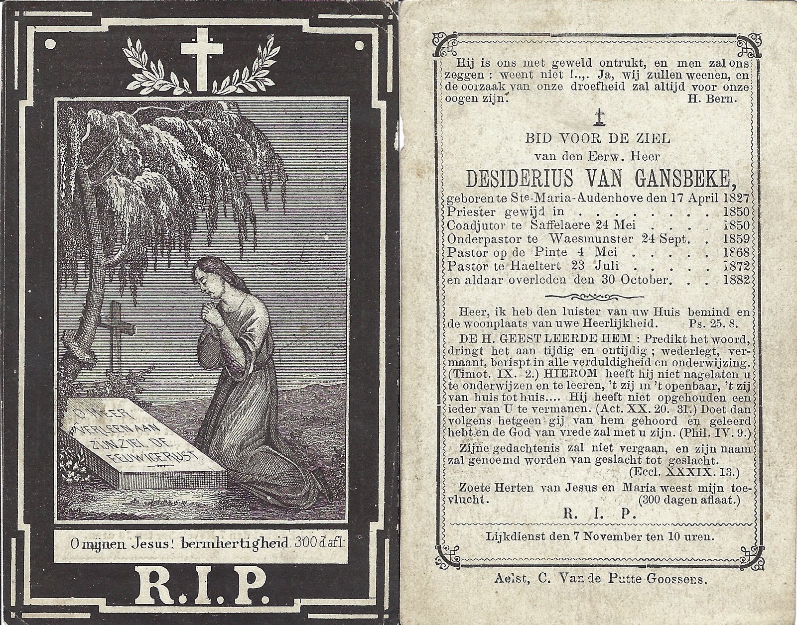 Van Gansbeke Desiderius, Priester HaaltertSint-Maria-Oudenhove17/04/1827Haaltert30/10/1882