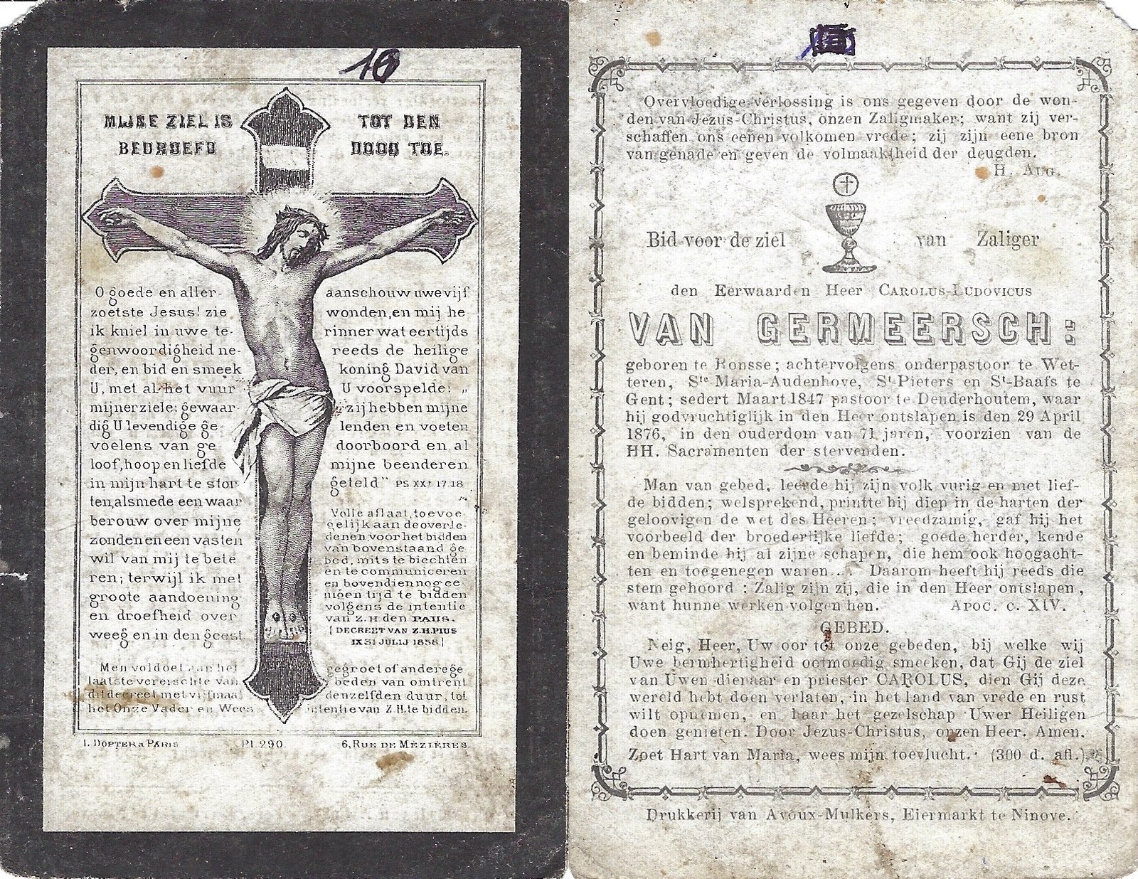 Van Germeersch Carolus, Pastoor DenderhoutemRonse1805Denderhoutem29/04/1876