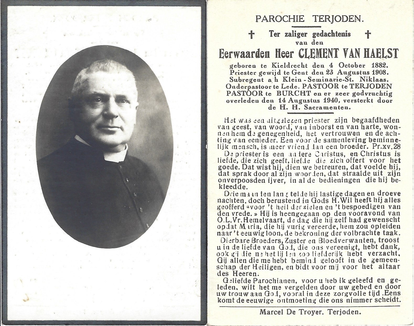 Van Haelst Clement, Priester TerjodenKieldrecht04/10/1882Burcht14/08/1940