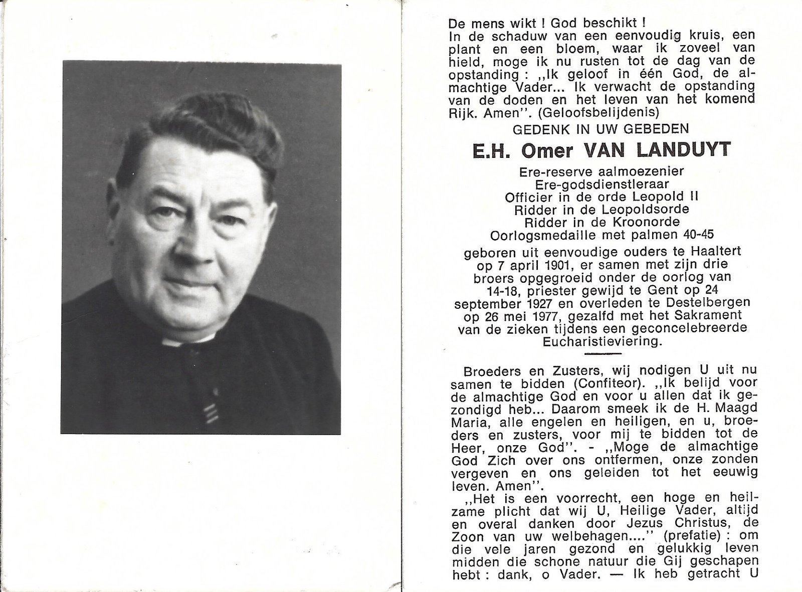 Van Landuyt Omer, Priester Haaltert07/04/1901Destelbergen26/05/1977