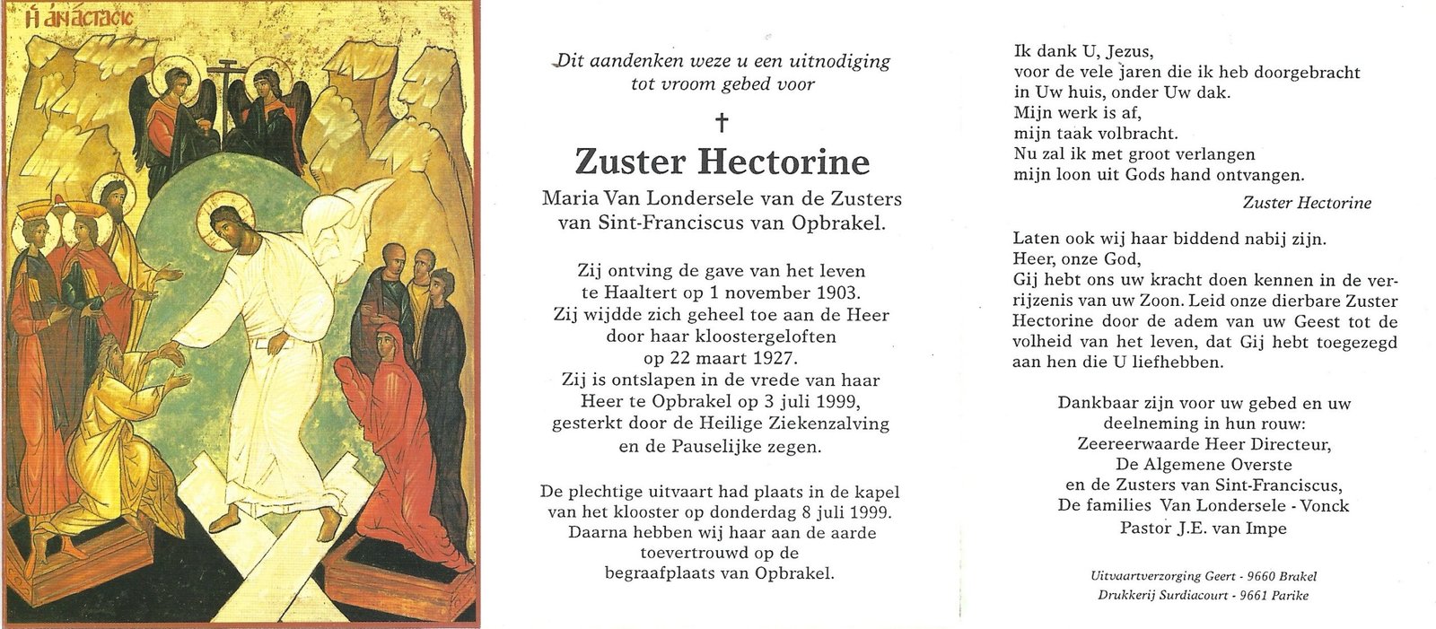 Van Londersele Maria, Zuster HectorineHaaltert01/11/1903Opbrakel03/07/1999