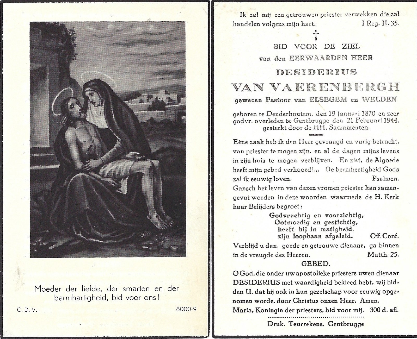 Van Vaerenbergh Desiderius, PriesterDenderhoutem19/01/1870Gentbrugge21/02/1944