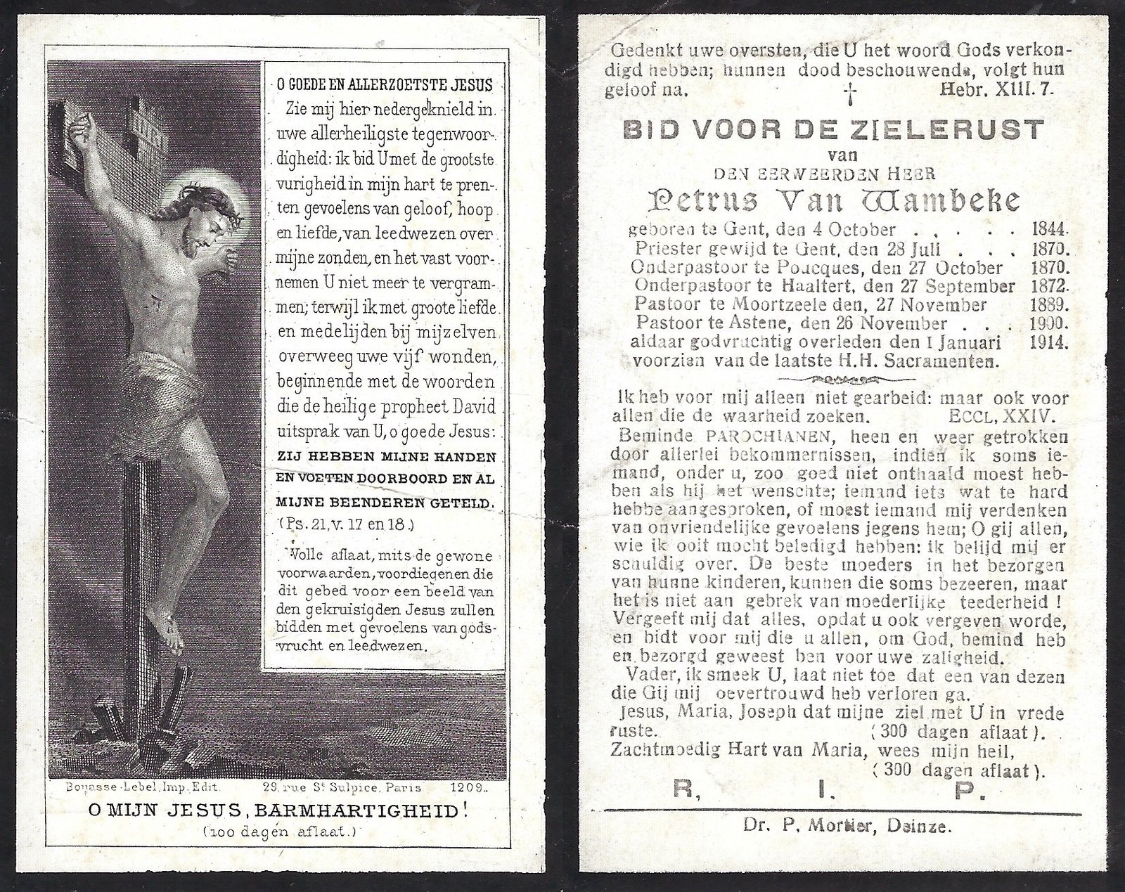 Van Wambeke Petrus, PriesterGent04/10/1844Astene01/01/1914