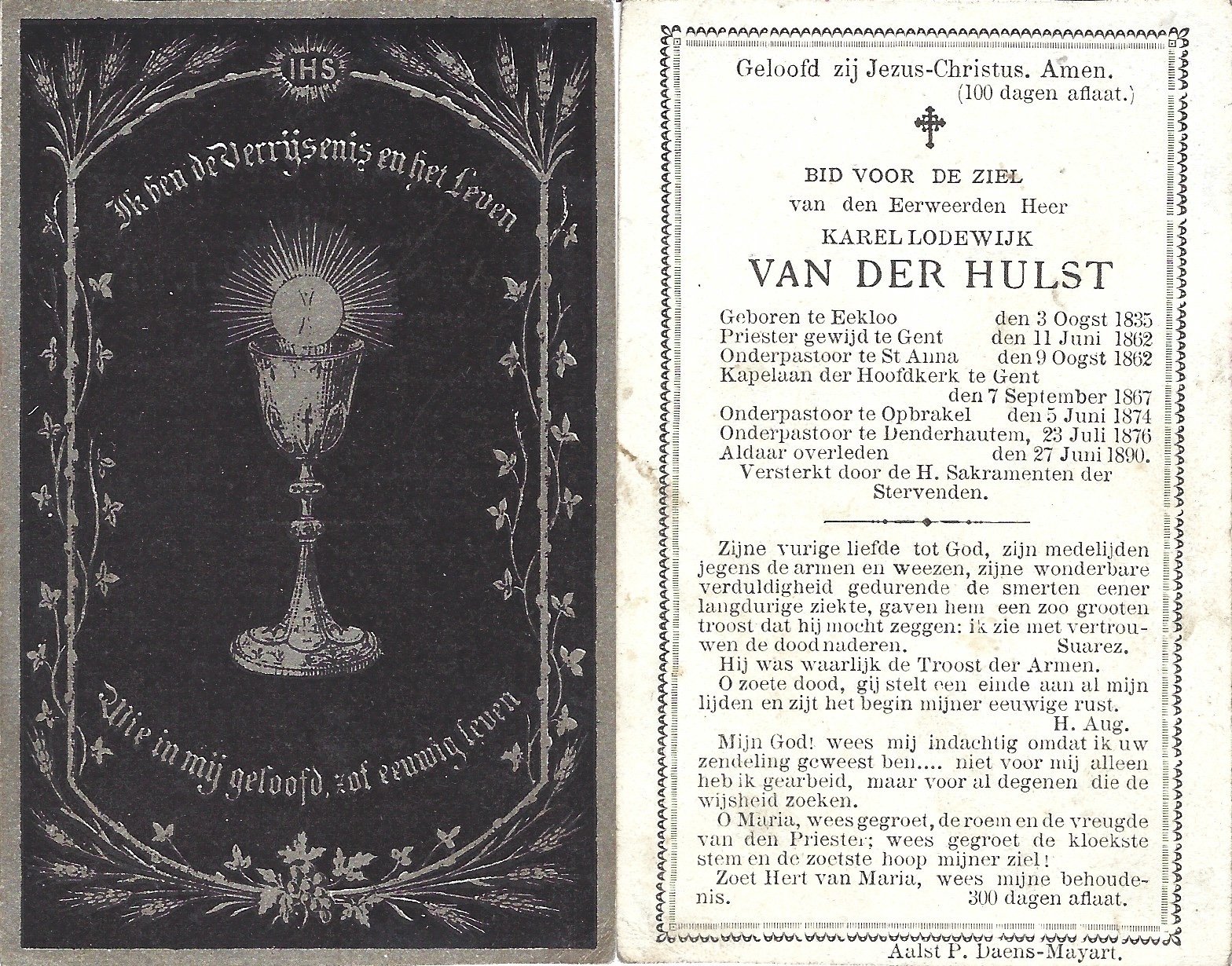 Van der Hulst Karel Lodewijk, Onderpastoor DenderhoutemEeklo03/08/1835Denderhoutem27/06/1890