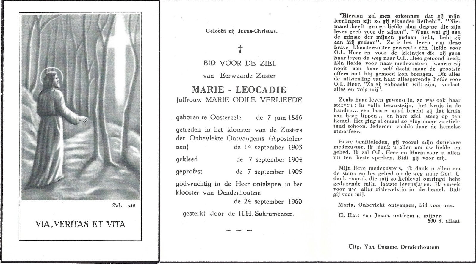 Verliefde Marie-Odile, Zuster Marie-LeocadieOosterzele07/06/1886Denderhoutem24/09/1960