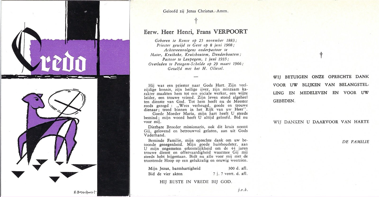 Verpoort Henri, Onderpastoor DenderhoutemRonse25/11/1883Petegem – Schelde29/03/1966