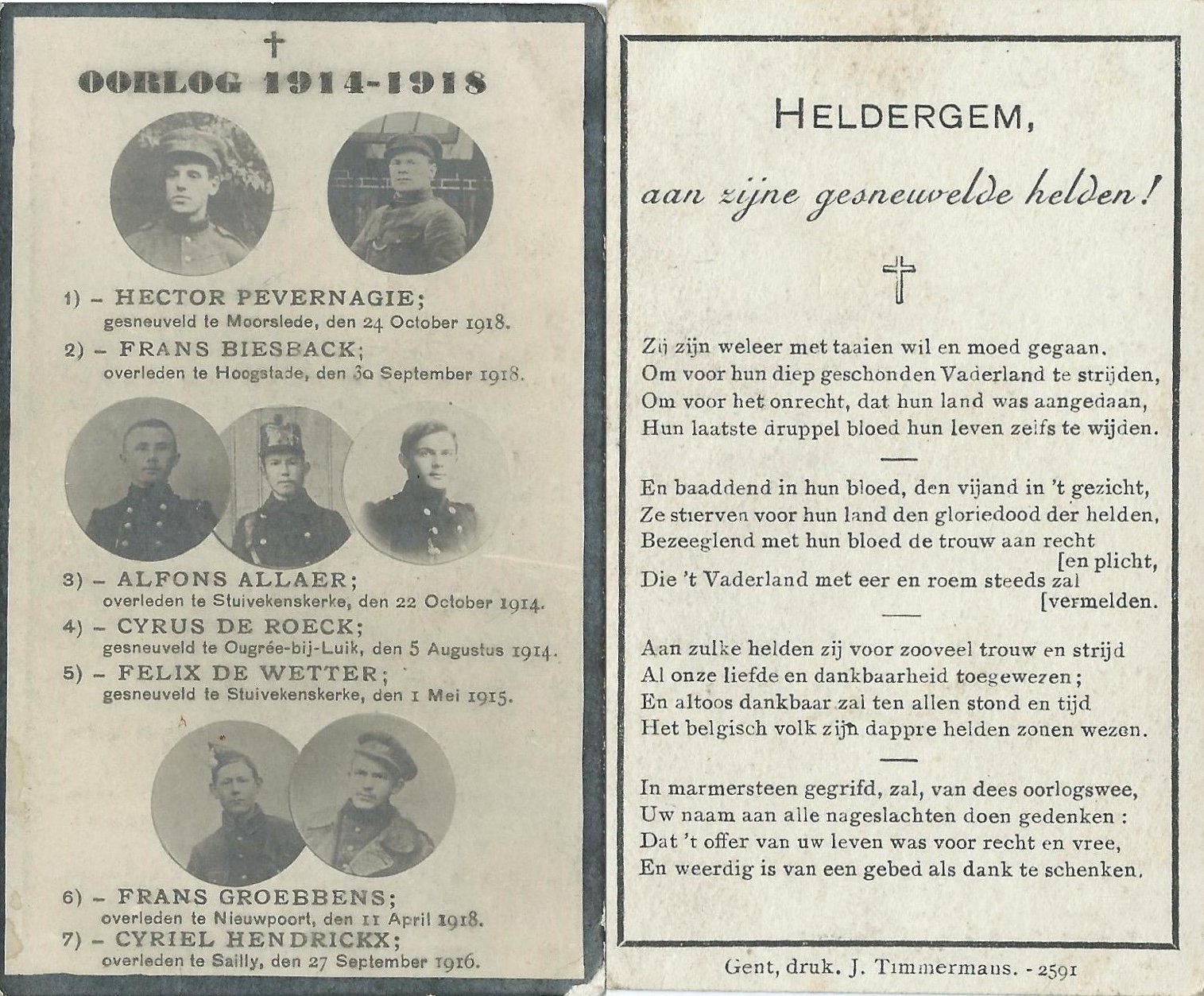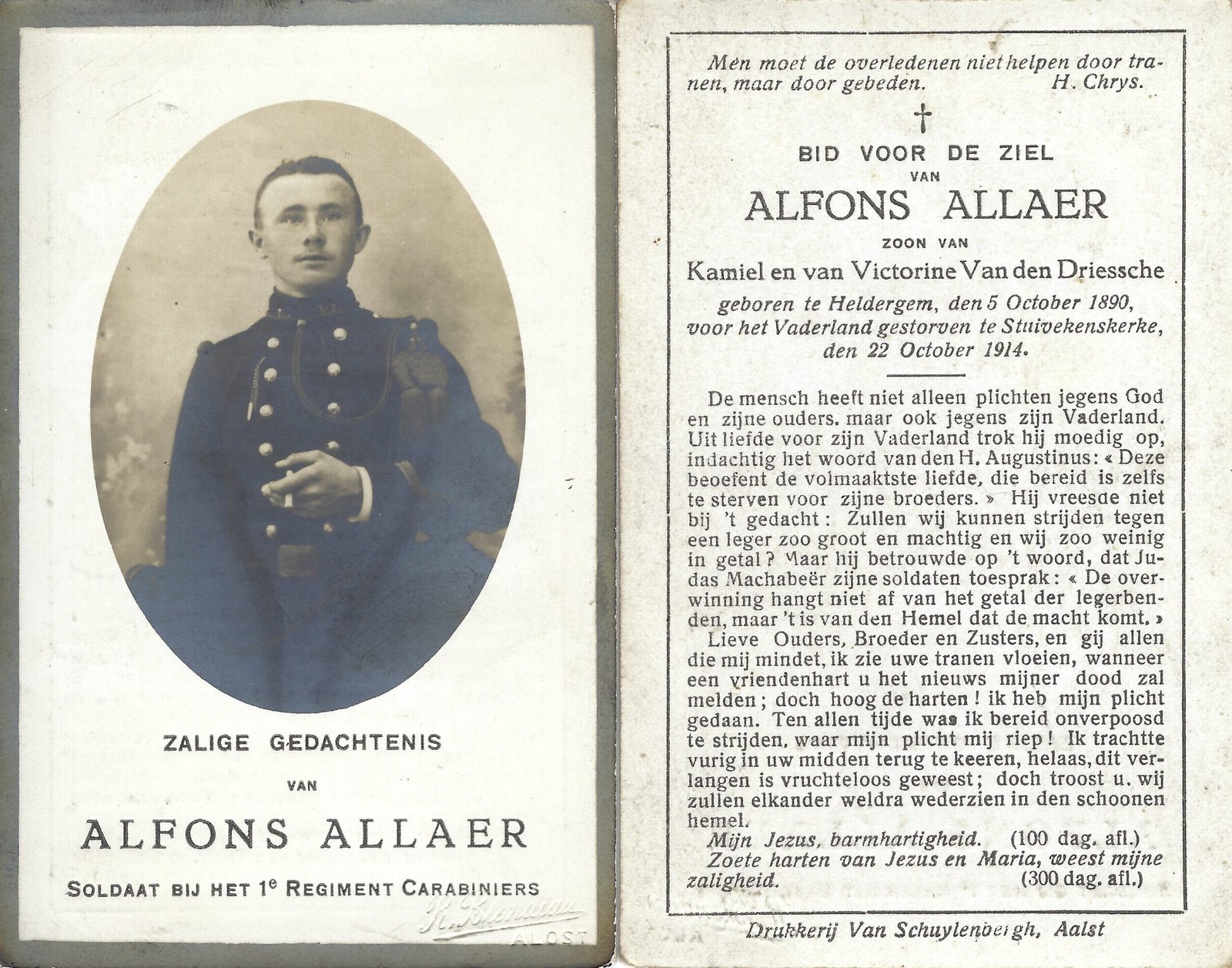 | Allaer Alfons | Heldergem | 05/10/1890 | Stuivekenskerke | 22/10/1914 |