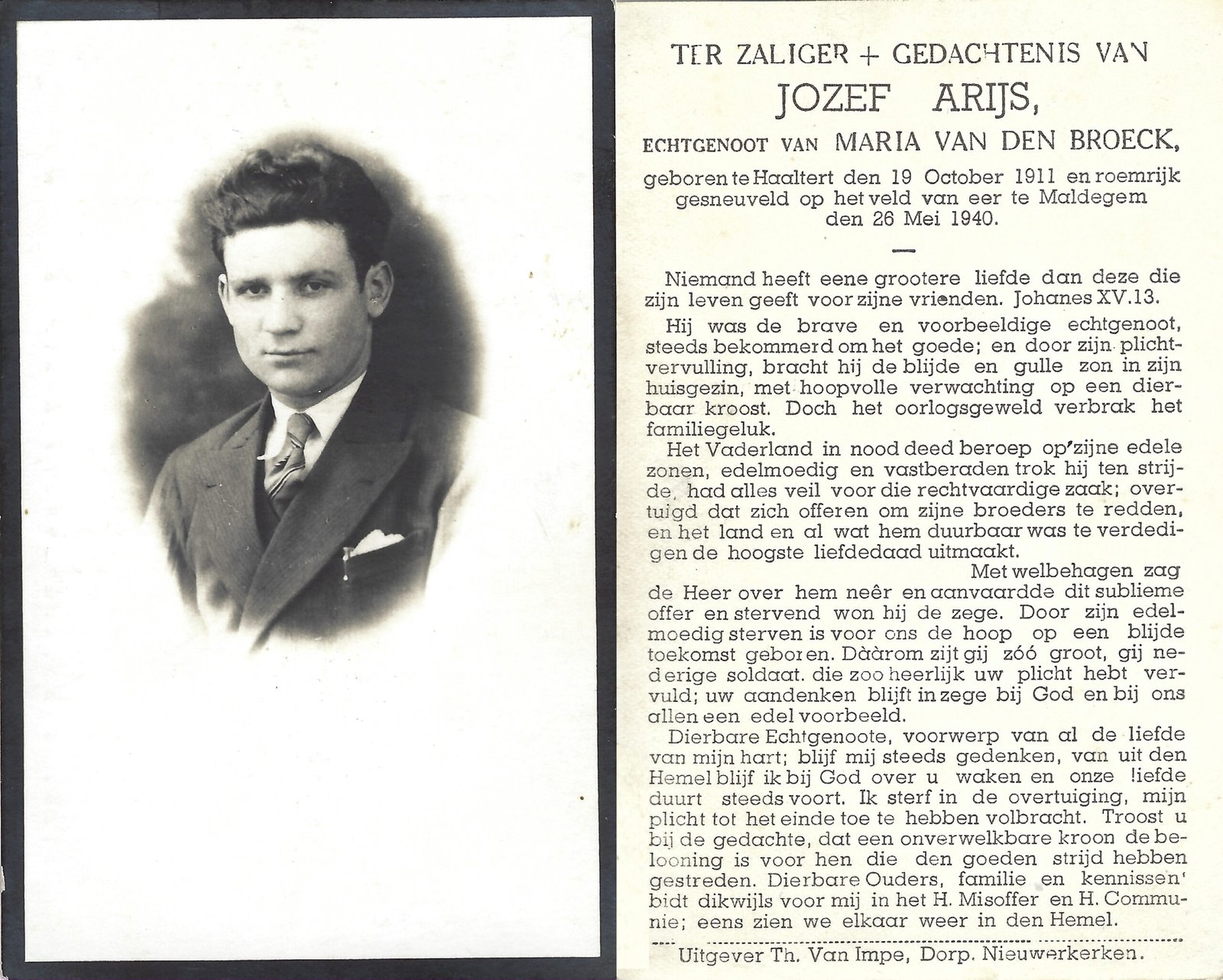 | Arijs Jozef | Haaltert | 19/10/1911 | Maldegem | 26/05/1940 |