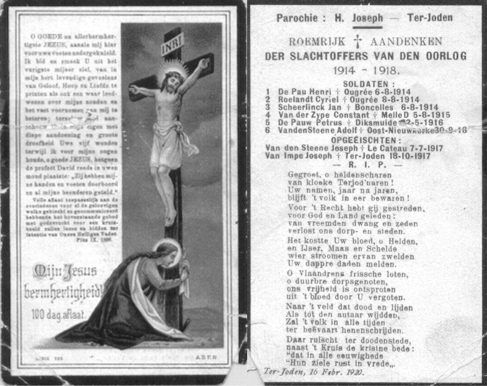 Bidprentje overzicht gesneuvelde soldaten Eerste Wereldoorlog Terjoden