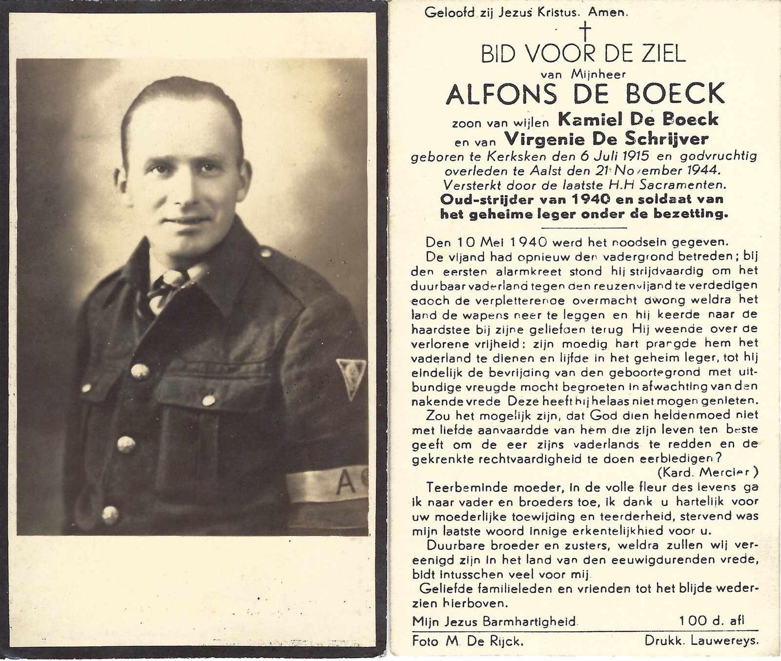 | De Boeck Alfons | Haaltert | 06/07/1915 | Aalst | 21/11/1944 |
